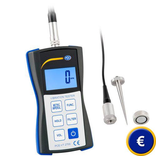 | Vibromètre PCE-VT 2700 Appareil maniable pour les débutants d'inspections de vibrations des machines et installations / Vibromètre qui détecte les trois paramètres importants de vibration |
